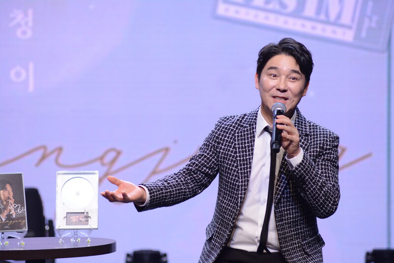 These photos taken during the media showcase of South Korean singer Im Chang-jung for his upcoming 3rd mini album "I'm A Fool" show singer posing for his photo, performing his title track "I'm A Fool" and answering questions throughout the session.