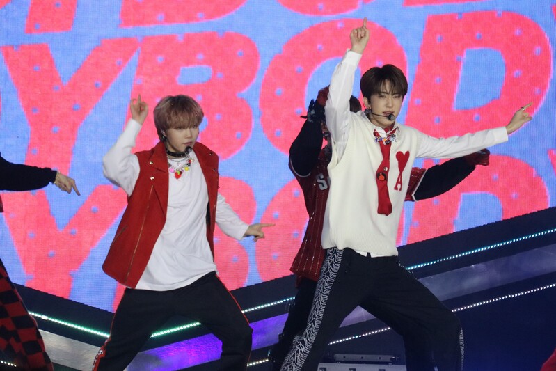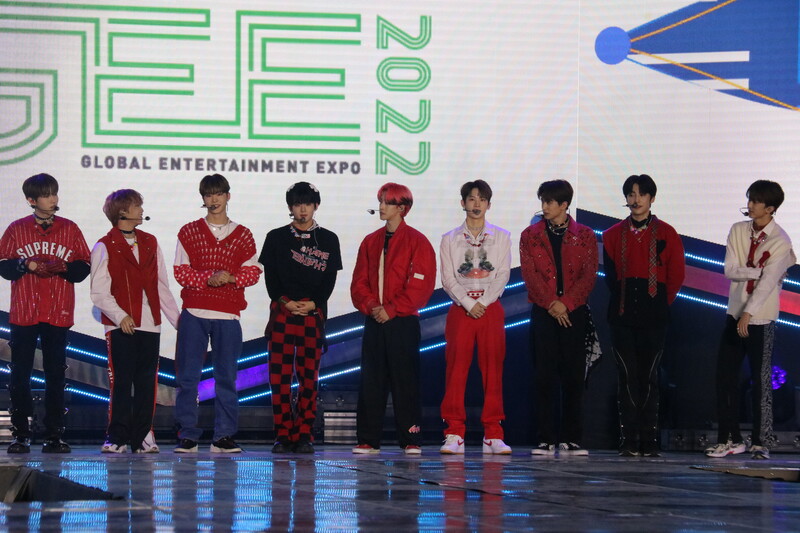 These photos, which are taken by Ra Hwakjin on Nov. 11, show boy group UNITE performing and talking at the dream stage of 2022 Global Entertainment Expo on Friday.