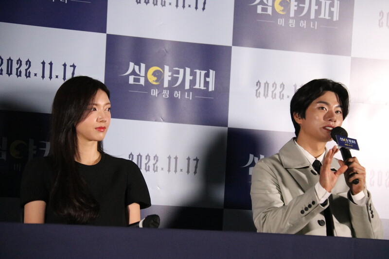 These photos, which are taken by Ra Hwakjin on Nov. 11, show the press conference of romance movie "Cafe Midnight" starring actors Lee Yi-kyung and Chae Seo-jin.