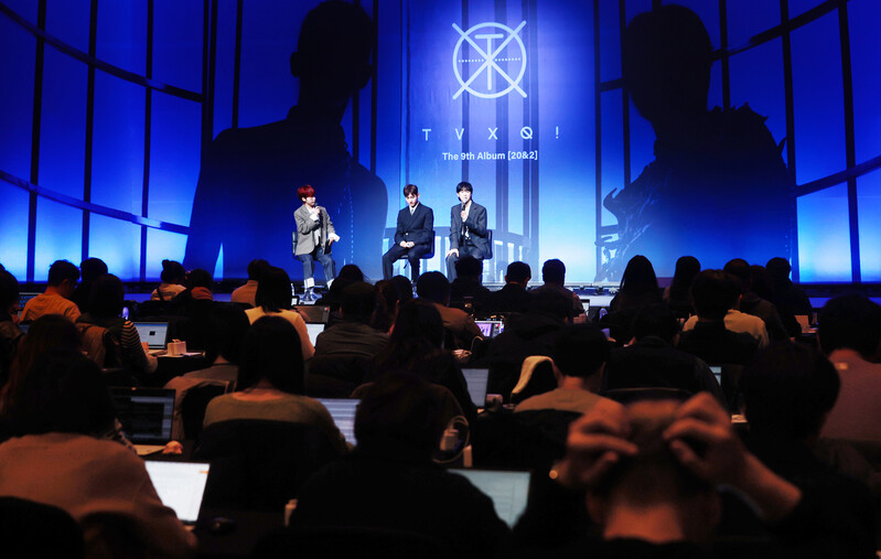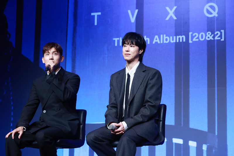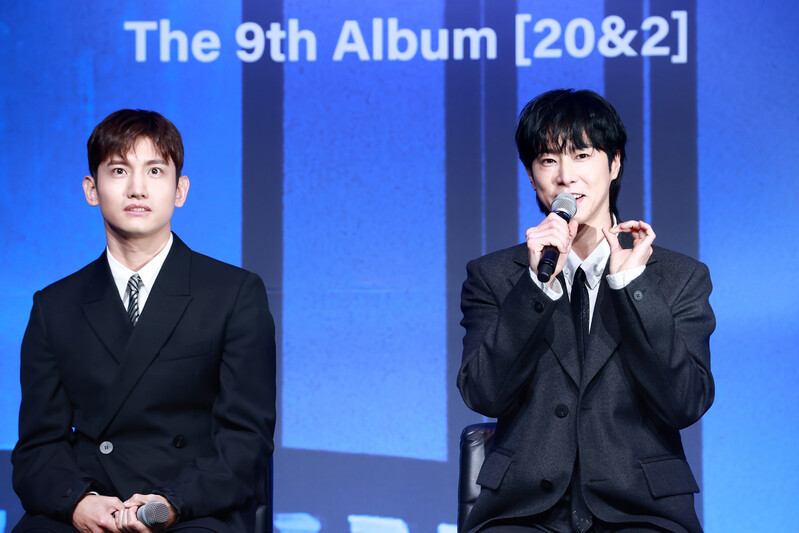 These photos taken during the media showcase of K-pop boy group TVXQ! show members attending the media showcase of their 9th single album "20&2."