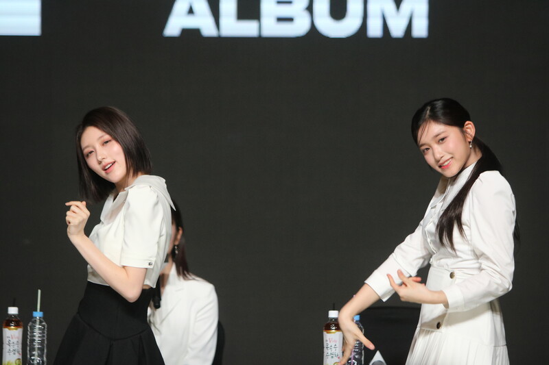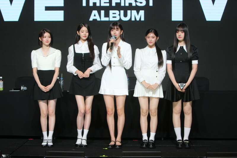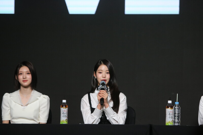 These photos show all members of IVE during the Q&A session of the media showcase of their first LP "I've IVE." This six-piece group participated in writing tracks of their first full-length album.