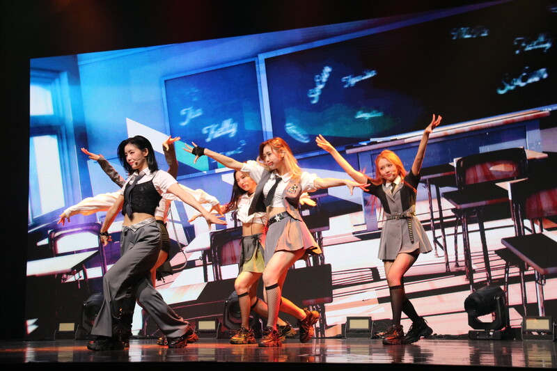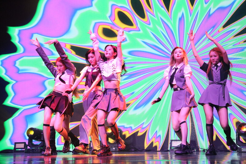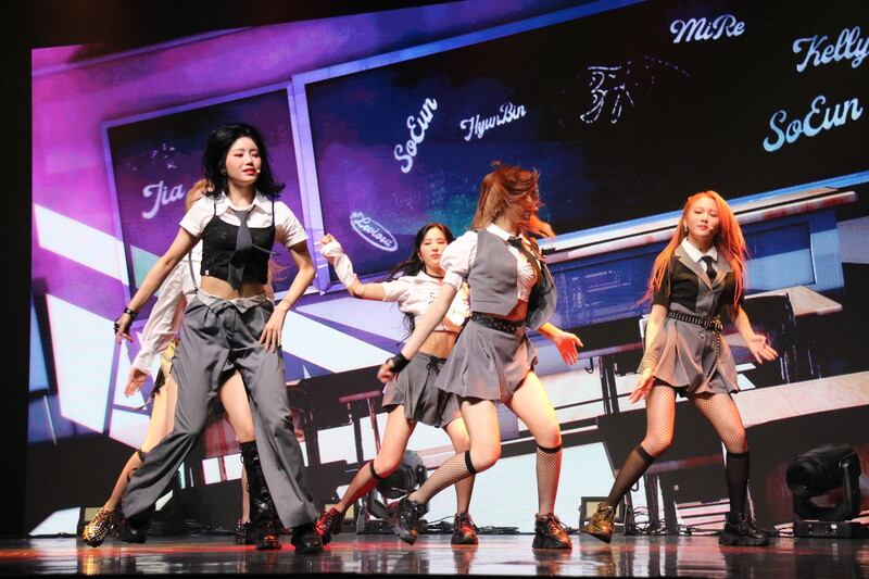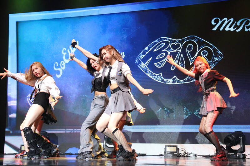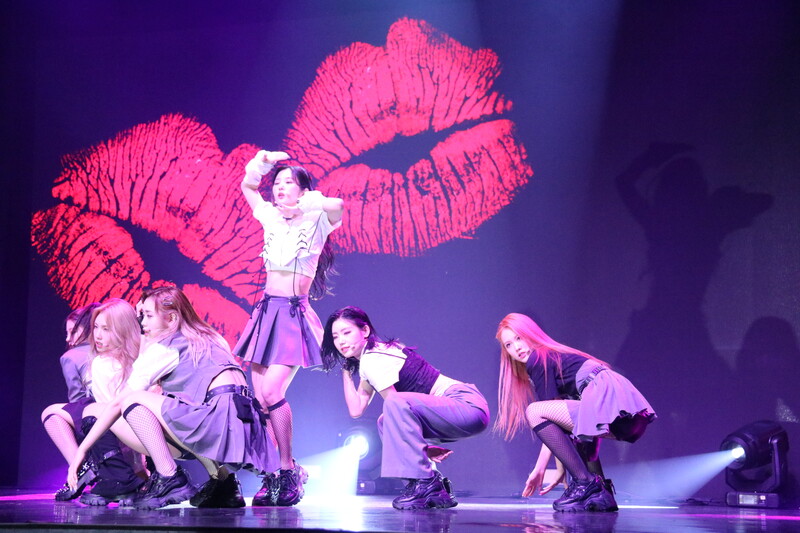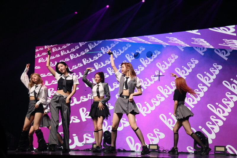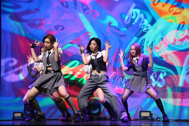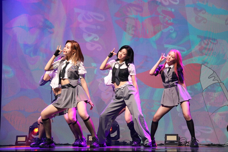 These photos show Tri.be performing title song "KISS" during media showcase for third single album "LEVIOSA."
