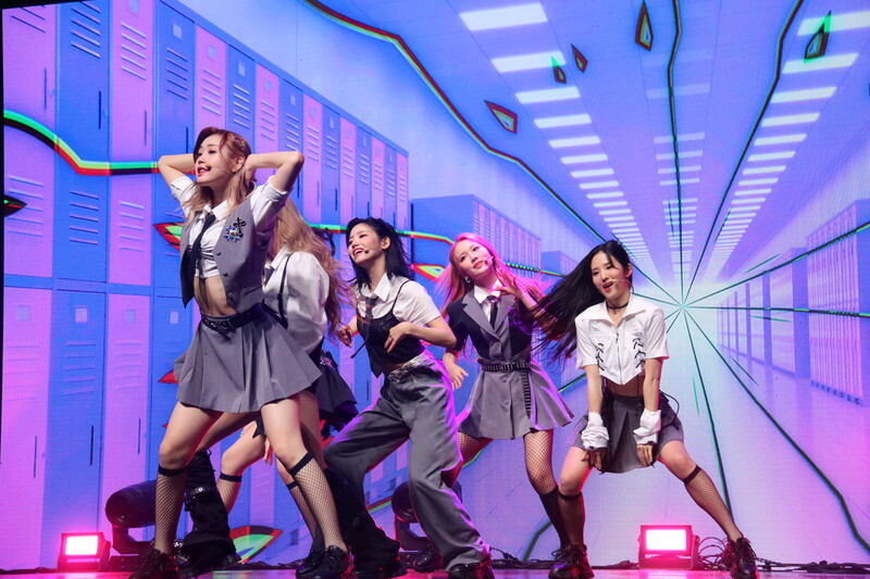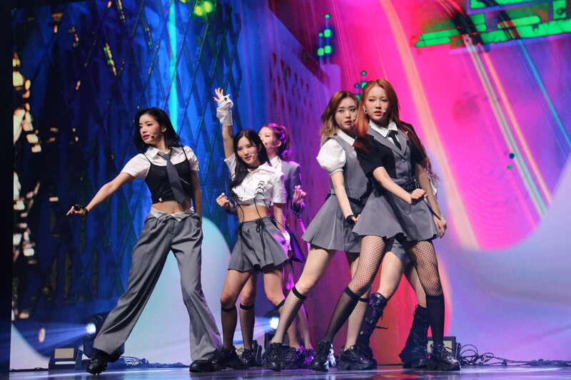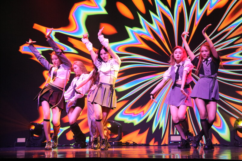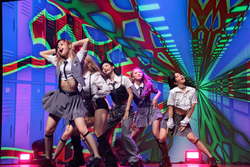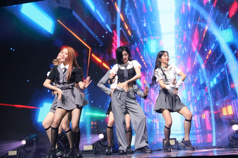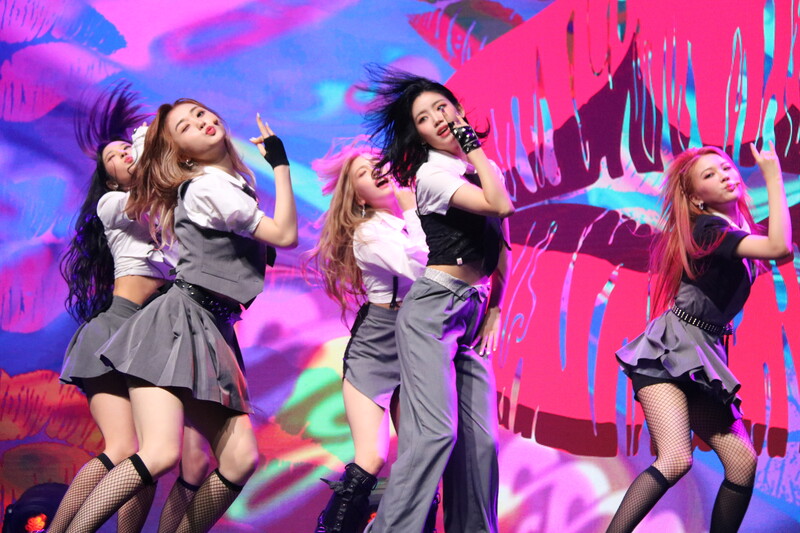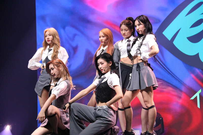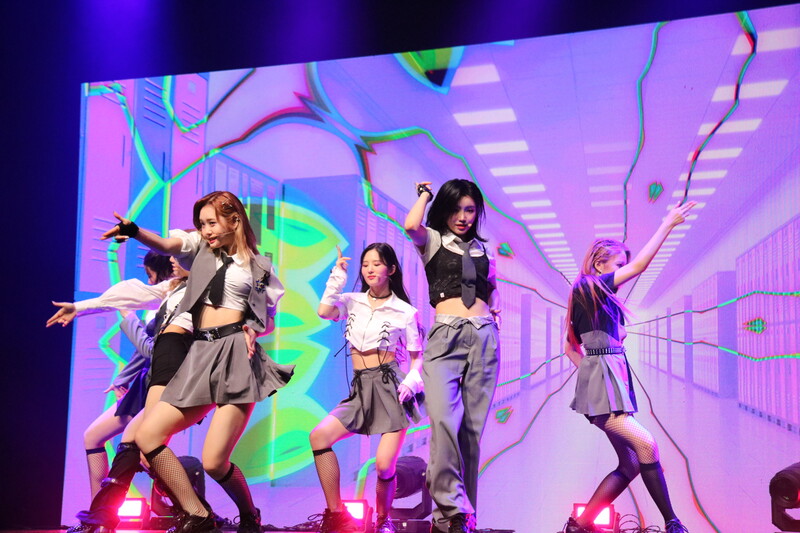 These photos show Tri.be performing title song "KISS" during media showcase for third single album "LEVIOSA."