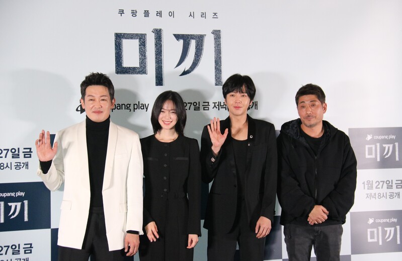 These are the photos taken during the press conference of upcoming Coupang Play series "Decoy," starring Jang Keun-suk, Lee Elijah, and Heo Sung-tae. 'Decoy' will premiere this Friday. (Jan. 27)