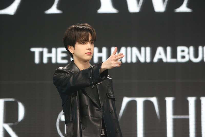 These are the individual photos of THE BOYZ Sunwoo, Hyunjae, and Younghoon during the media showcase for their 8th mini album "BE AWAKE."