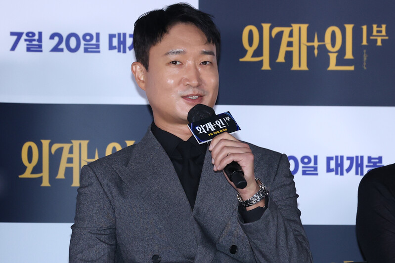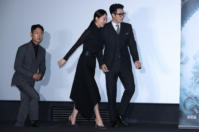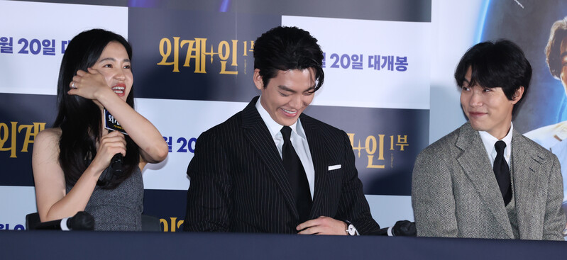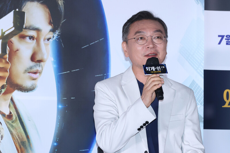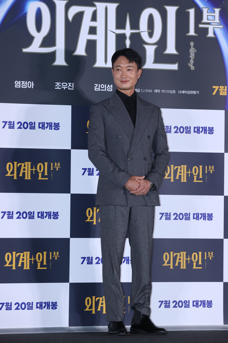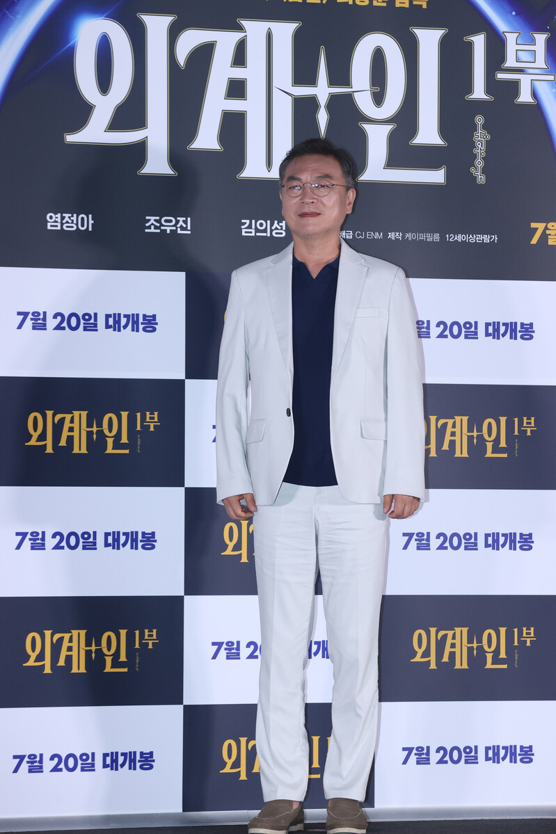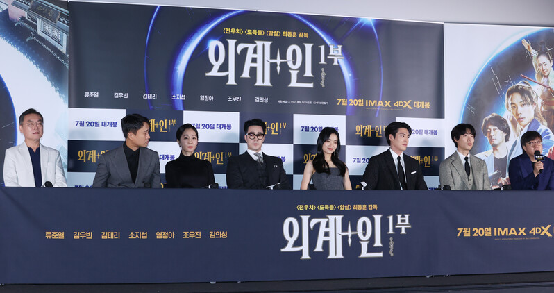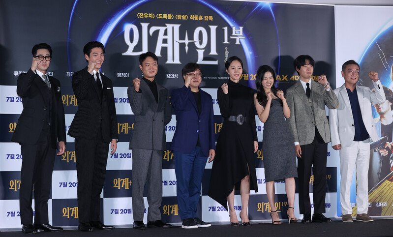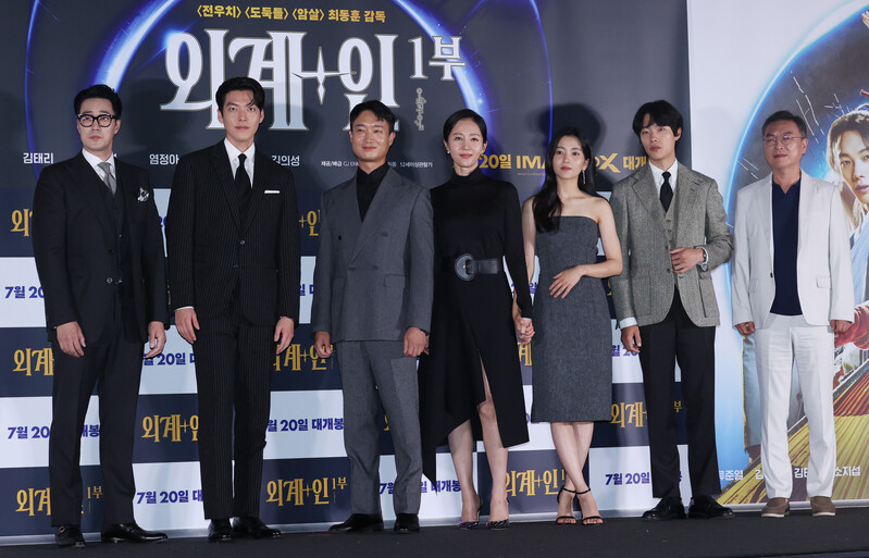 These photos, show the cast members and the director Choi Dong-hoon from the new film "Alienoid" at CGV Yongsan I park mall during the press conference on July 13th, 2022