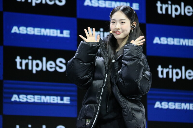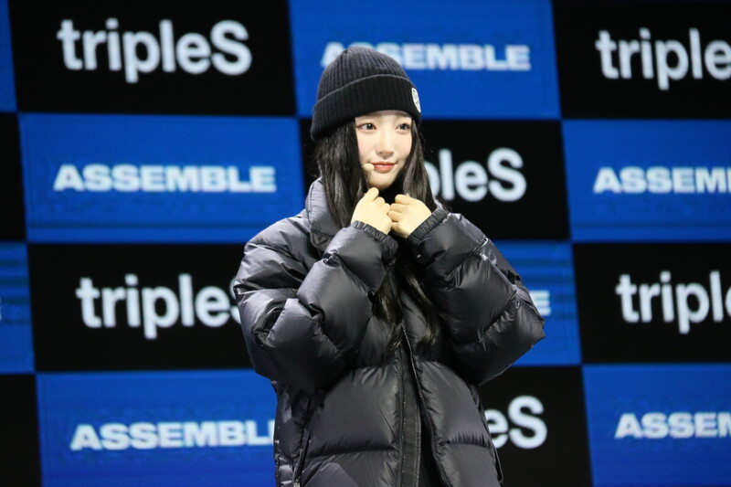 These photos show Kim Chae-yeon, Kim Yoo-yeon, and Kim Soo-min from the South Korean girl group TripleS at the press showcase of their first mini album 'ASSEMBLE,' which was held at the Blue Square Master Hall in Yongsang-gu, Seoul at Feb. 13.