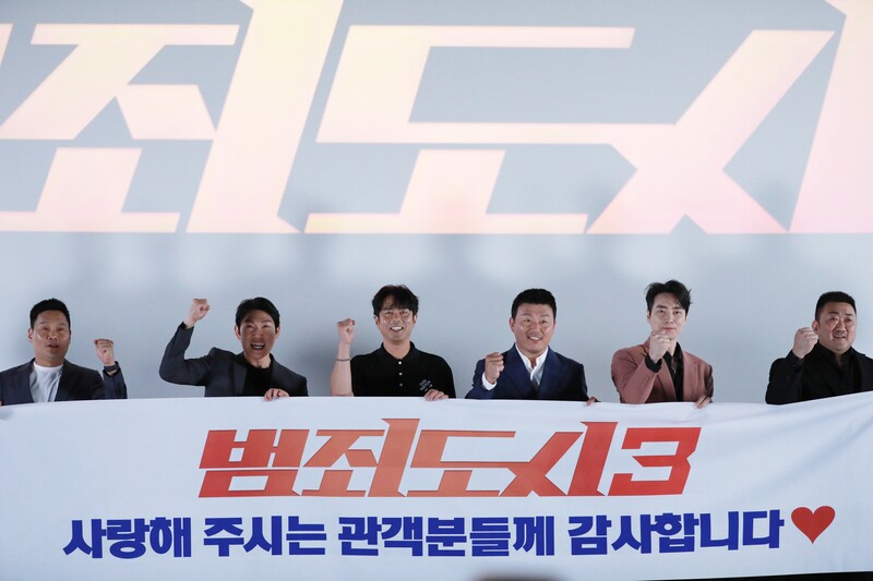 These photos show the cream of "The Roundup: No Way Out" showcase held in COEX, Seoul, on June 19, 2023. The event celebrates the huge success of the third sequel to "The Roundup" (2022), directed by Lee Sang-yong and starring Ma Dong-seok, Lee Jun-hyuk and Aoki Munetaka. The South Korean action flick crossed 8 million admissions as of June 12, the 14th day of its release, making it the biggest hit movie of the year here so far.