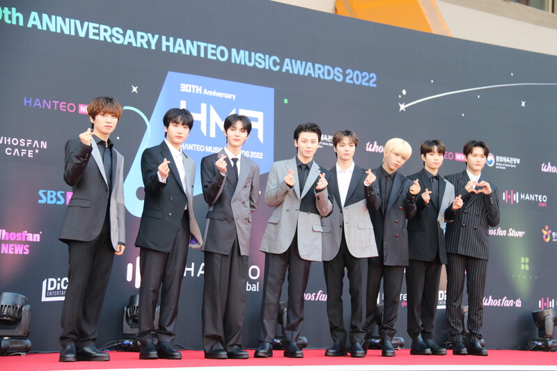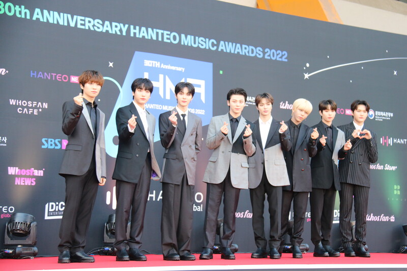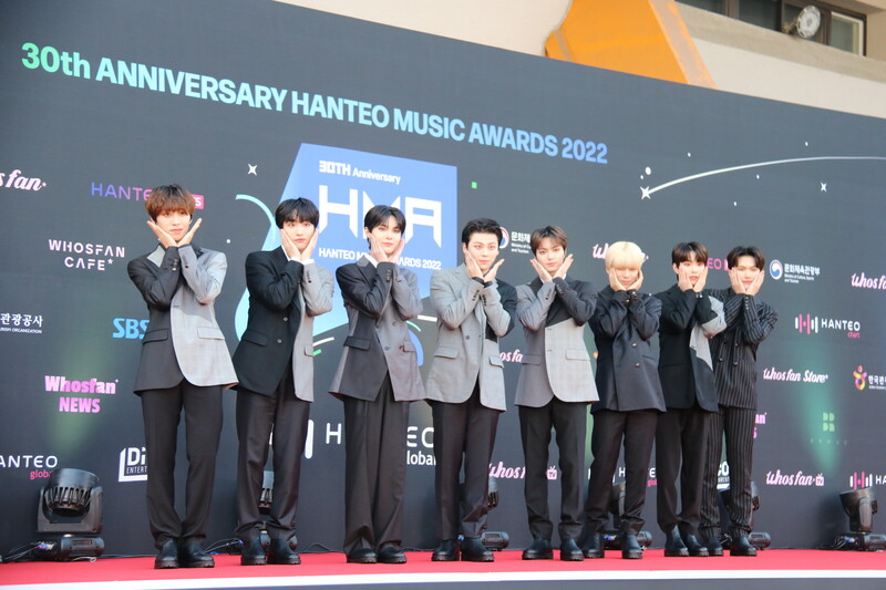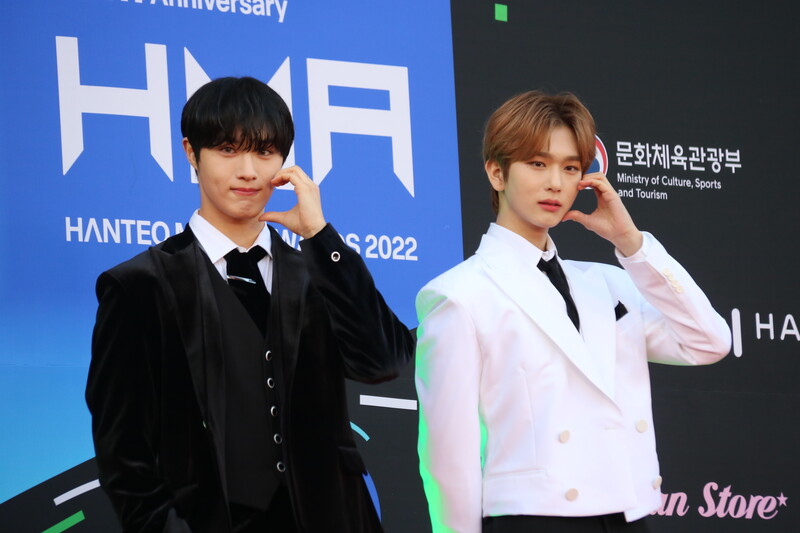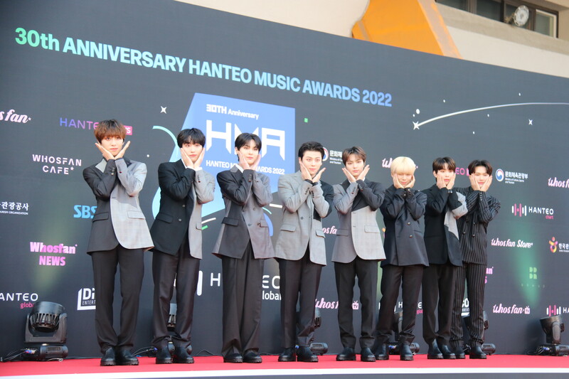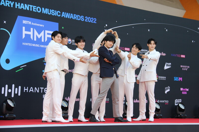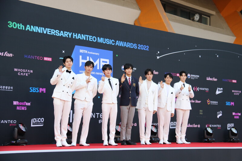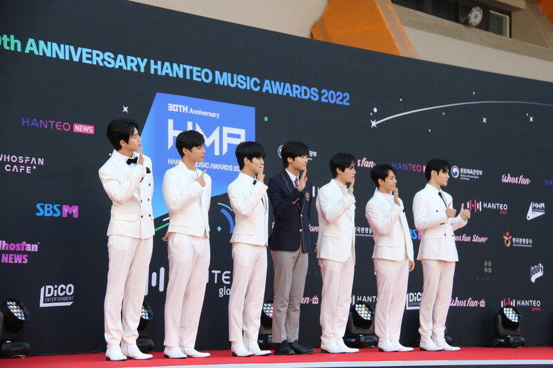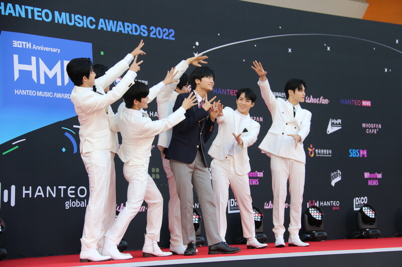 These are the photos of BLANK2Y, TAN, Jeong Dong Won, MC Hyunsuk from CIX and Baekseung from EPEX from the red carpet event of 30th Hanteo Music Awards 2022.