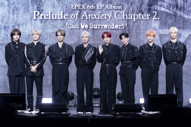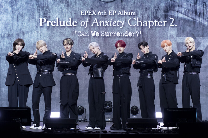 These photos taken during the media showcase of K-pop boy group EPEX for their 6th EP Album 'Prelude of Anxiety Chapter 2 : Can We Surrender?' show members posing for their individual and group photos.