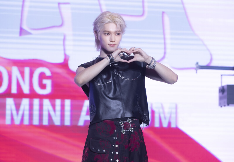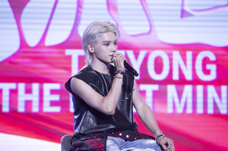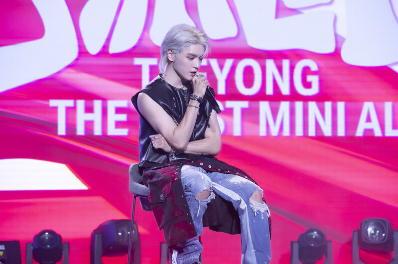 These photos taken during the media showcase of Taeyong' first solo mini album 'Shalala' shows Taeyong posing for his individual photos and answering questions regarding his album.