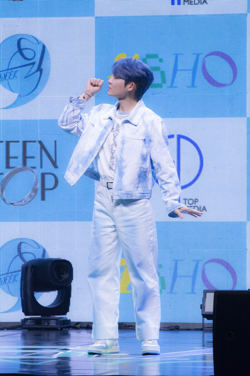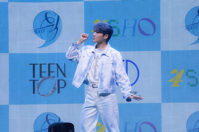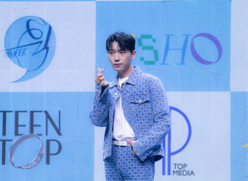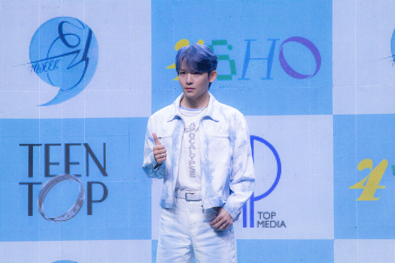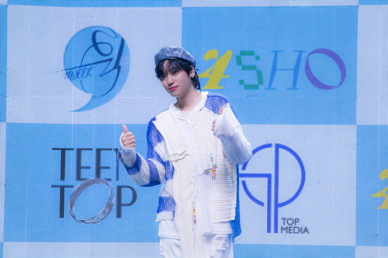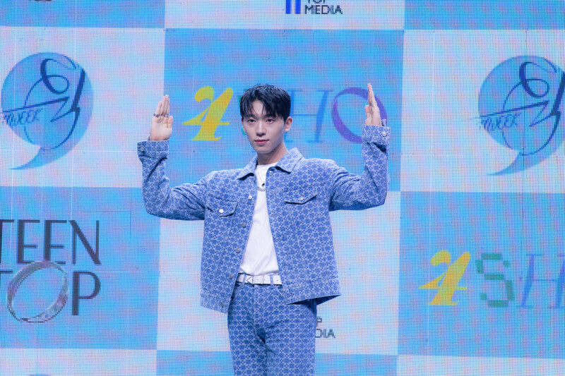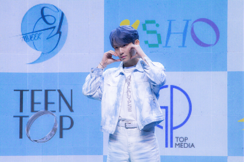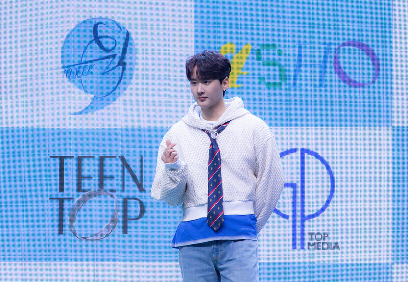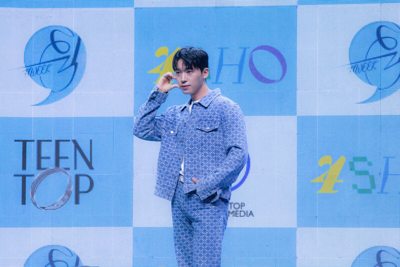 These photos taken during the media showcase of K-pop boy group Teen Top shows members posing for their individual and group photos.