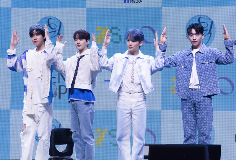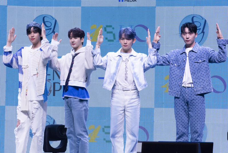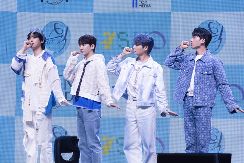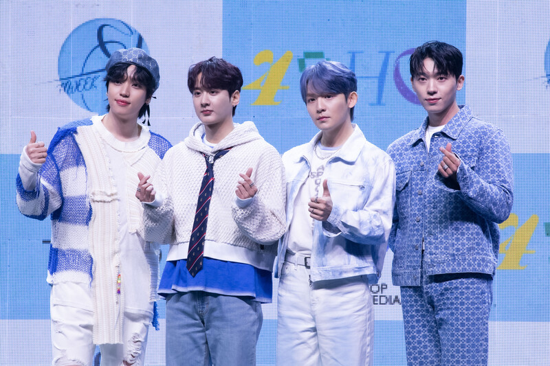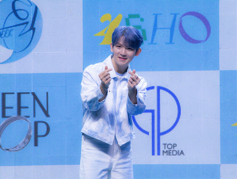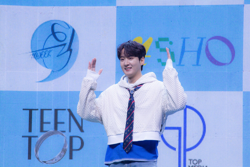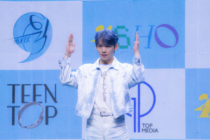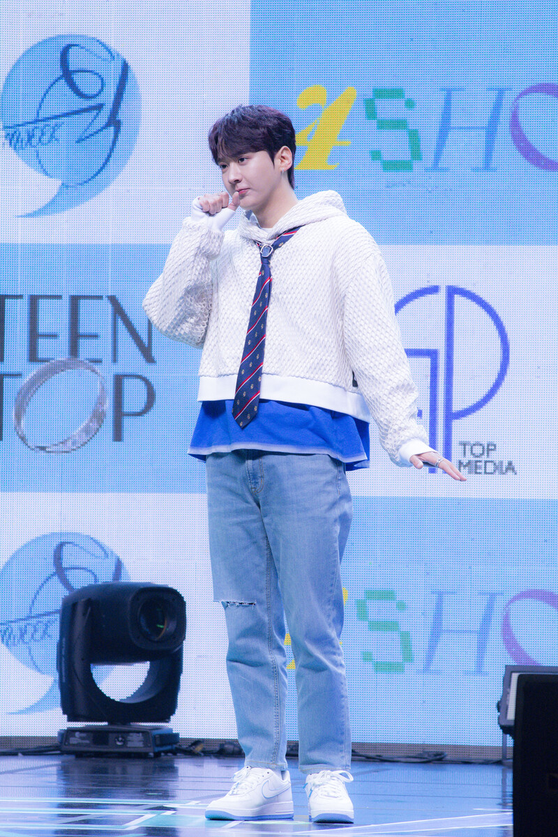 These photos taken during the media showcase of K-pop boy group Teen Top shows members posing for their individual and group photos.