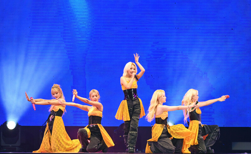 These photos, provided by CUBE Entertainment, show (G)I-DLE performing on the ending stage of "Taiwan Television Enterprise's New Year's Eve television special SUPER STAR."