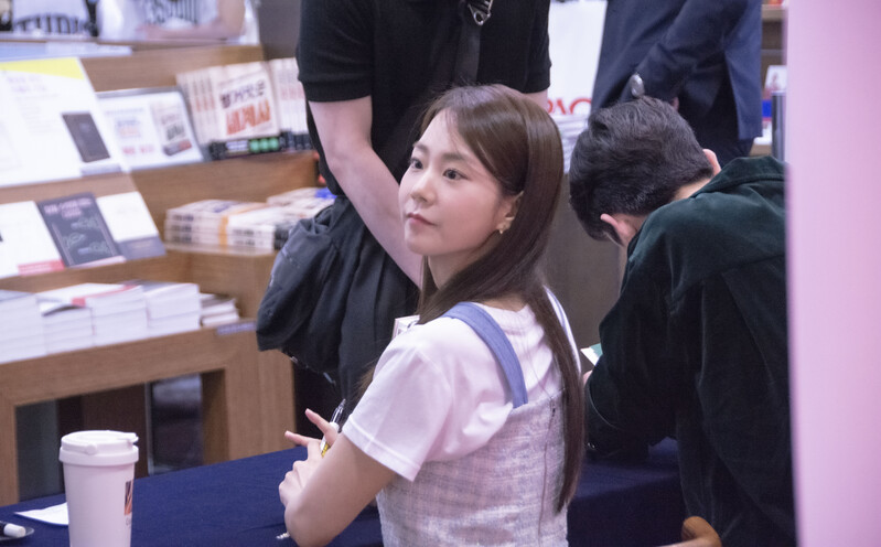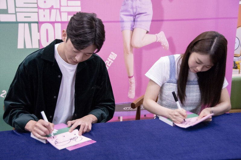 These photos taken during the fan sign event of the novel "Close Relationship" based on the upcoming movie by the same name featuring actress Han Seung-yeon and actor Lee Ji-hoon.