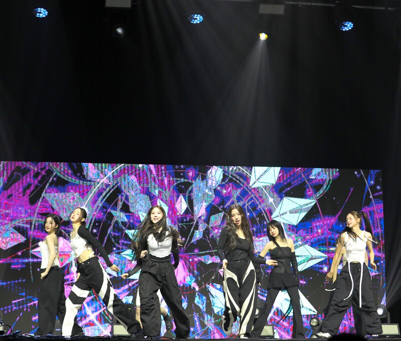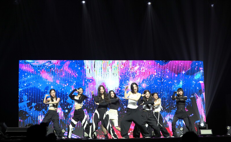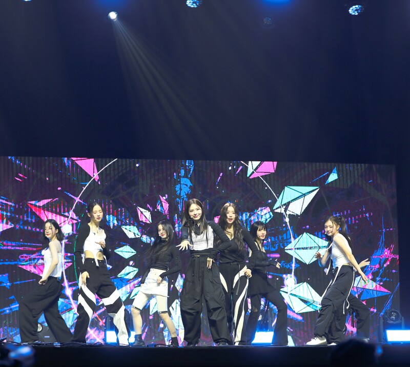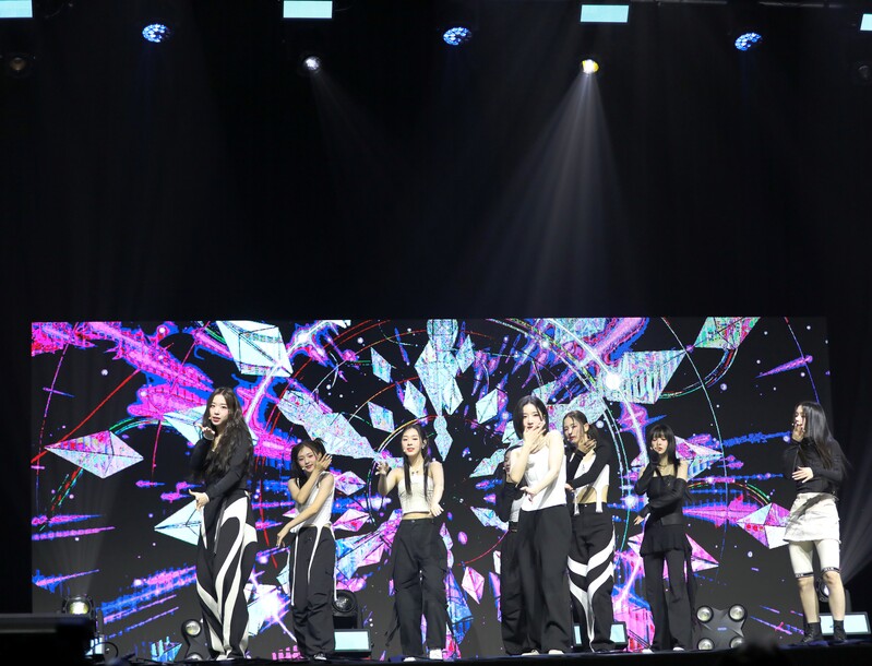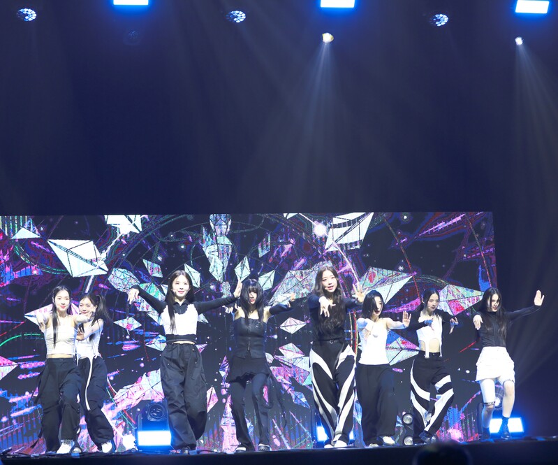 These photos taken during the media showcase of K-pop girl group tripleS EVOLution's 1st mini album『⟡』, show members performing their title track 'Invincible'