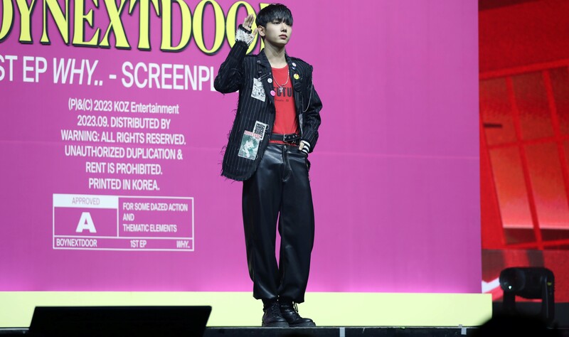 These photos, taken during the media showcase of BOYNEXTDOOR's 1st mini album 'WHY..', show the members posing for individual photos.