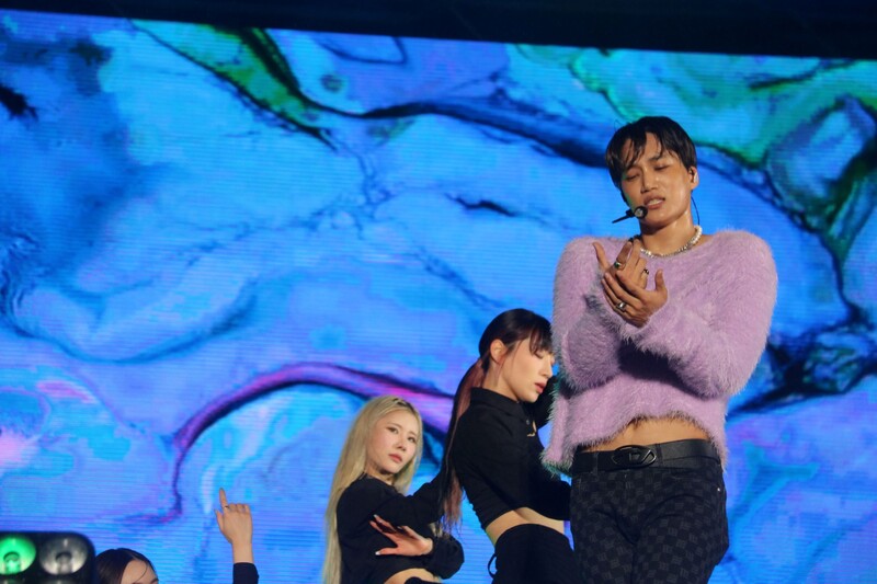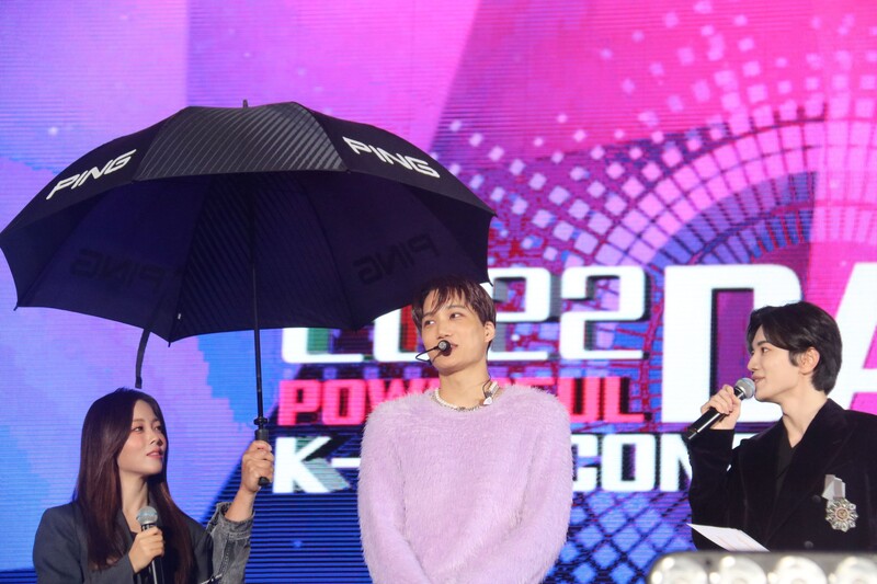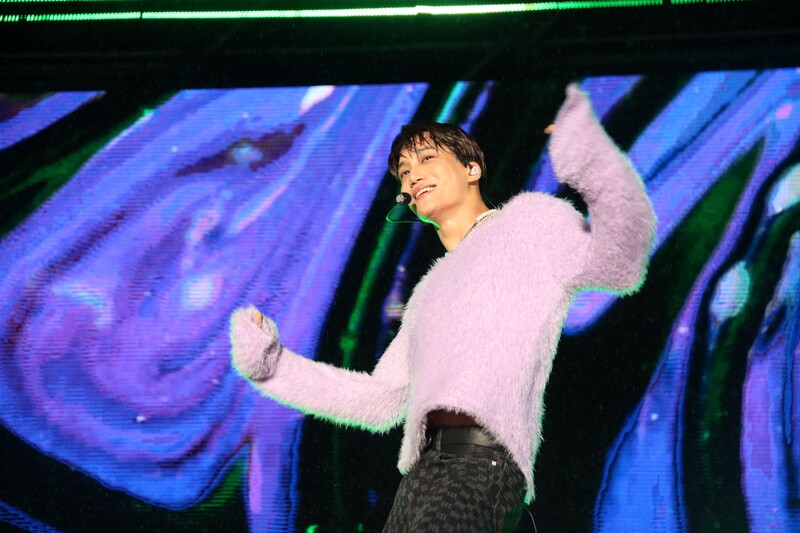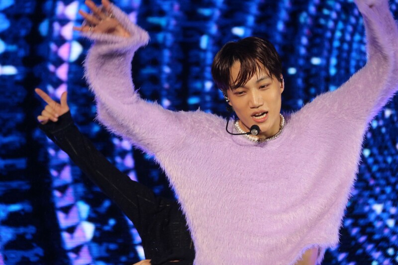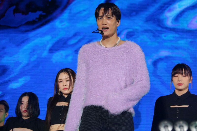 These Photos show KAI from boy group EXO during the "Powerful Daegu K-pop Concert" which was held at Kyungpook National University in Daegu on October 9.