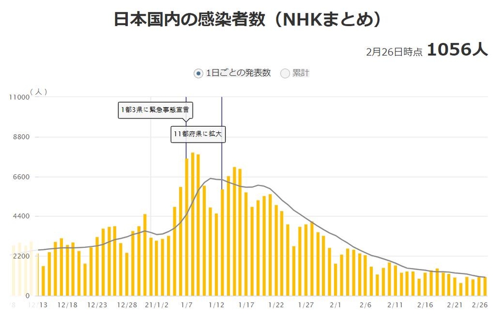 | ▲ 일본 코로나19 하루 확진자 추이 [NHK 홈페이지 캡처, 재판매 및 DB 금지] |
