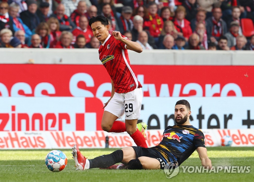 | ▲ 라이프치히전에서 드리블하는 프라이부르크 정우영. [로이터=연뉴스] |