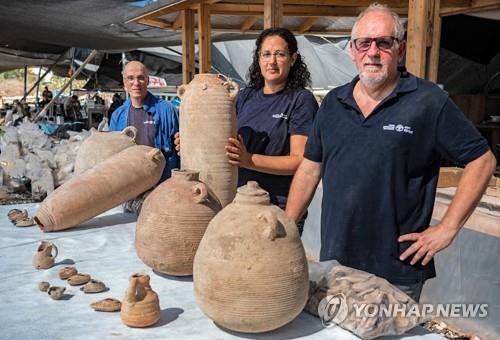 | ▲ (예루살렘 AFP=연합뉴스) 이스라엘 문화재청이 5일(현지시간) 공개한 2천700년전 화장실 발굴 팀원들이 도기를 보여주고 있다. 2021.10.5 photo@yna.co.kr |