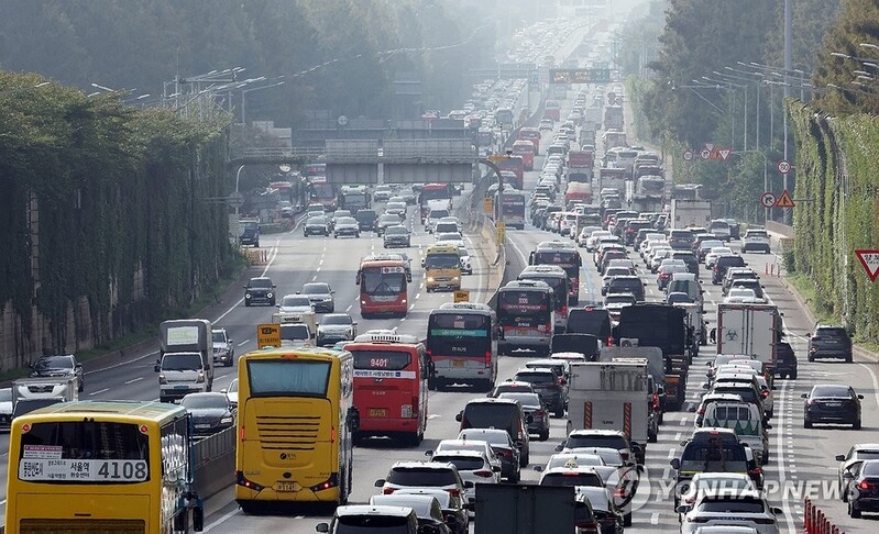 | ▲ 연휴 앞두고 경부고속도로 정체 (서울=연합뉴스) 이진욱 기자 = 2일 서울 서초구 잠원IC 인근 경부고속도로 하행선에서 차량이 정체를 빚고 있다. 2025.10.2 cityboy@yna.co.kr |