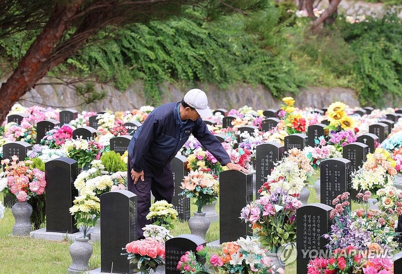 | ▲ 묘비 어루만지는 성묘객 (광주=연합뉴스) 조남수 기자 = 추석 연휴를 열흘 앞둔 23일 광주 북구 영락공원묘지에서 한 시민이 성묘하고 있다. 2025.9.23 iso64@yna.co.kr |