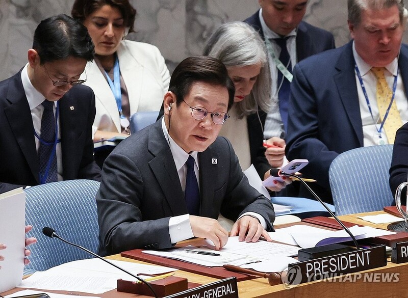 NEW YORK, Sept. 24 (Yonhap) -- President Lee Jae Myung called Wednesday for joint efforts to ensure the "responsible use" of artificial intelligence (AI), underscoring the role of the U.N. Security Council (UNSC) in shaping a collective global response.
