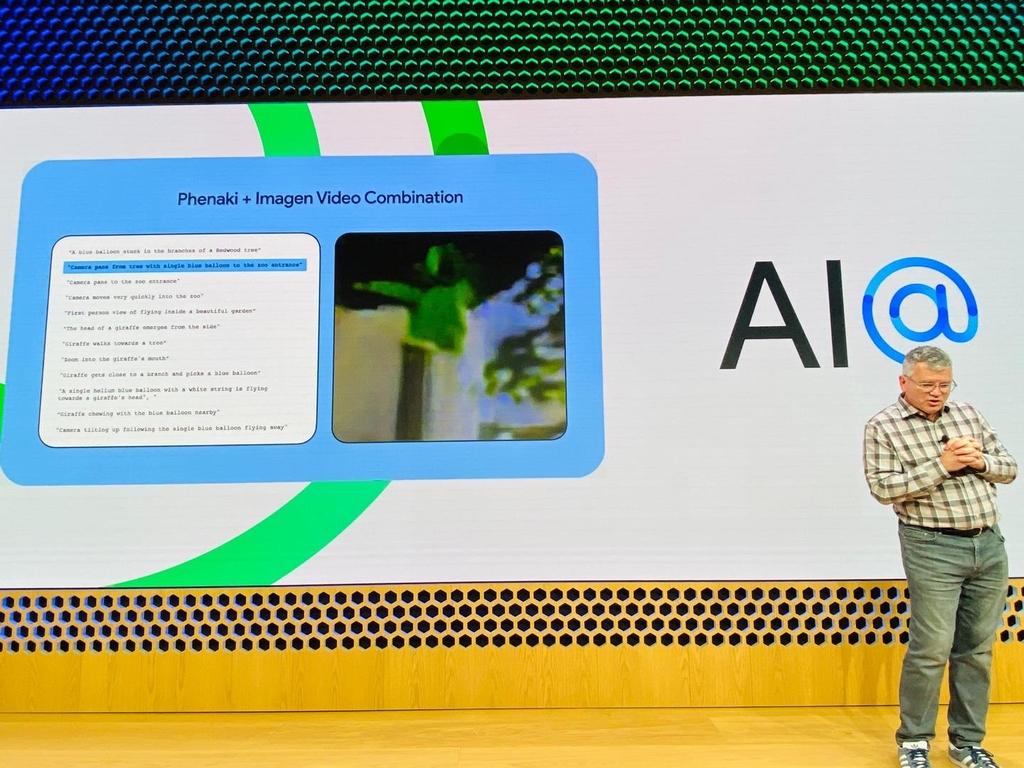 | ▲ 텍스트 명령들에 따라 구글 인공지능이 만들어낸 동영상 (뉴욕=연합뉴스) 강건택 특파원 = 2일(현지시간) 미국 뉴욕시 구글 피어57 캠퍼스에서 열린 '구글 AI 이벤트'에서 더글러스 에크 선임 연구국장이 인공지능(AI)을 활용해 텍스트 명령으로 동영상을 만들어내는 모습을 시연하고 있다. 2022.11.2. firstcircle@yna.co.kr |