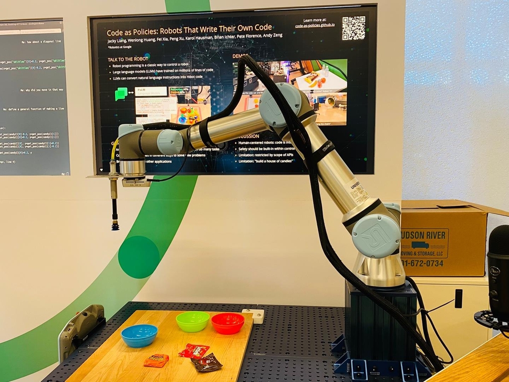 | ▲ 사람의 언어로 작동하는 로봇 (뉴욕=연합뉴스) 강건택 특파원 = 2일(현지시간) 미국 뉴욕시 구글 피어57 캠퍼스에서 열린 '구글 AI 이벤트'에 전시된 로봇. 인공지능(AI)을 활용해 사람의 언어로 된 명령을 로봇의 코드로 변환하는 기술이 적용됐다. 2022.11.2. firstcircle@yna.co.kr |