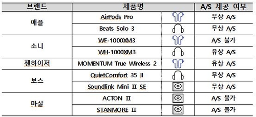 소비자원은 무선 음향기기를 해외직구로 사는 경우 최종 구매가격에 관세와 부가세, 국제배송료 등이 포함됐는지와 함께 가격변동 추세, 국내 AS 제공 여부 등을 확인할 것을 당부했다.