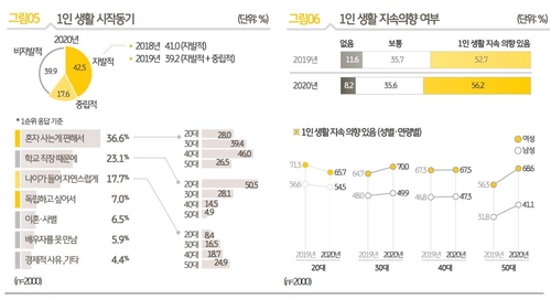 '1인 생활을 시작한 동기'에 대한 질문에 42.5%가 "자발적"이라고 답했다. 이는 2019년(39.2%), 2018년(41%)보다 높은 수준이다.