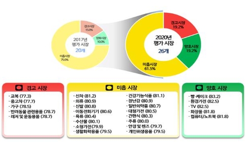 개선이 얼마나 시급한지를 보여주는 소비자 지향성 신호등 방식으로 분류하면 파란불에 해당하는 '양호 시장'은 전체의 19.2%로 2017년보다 9.2%포인트 증가했다.