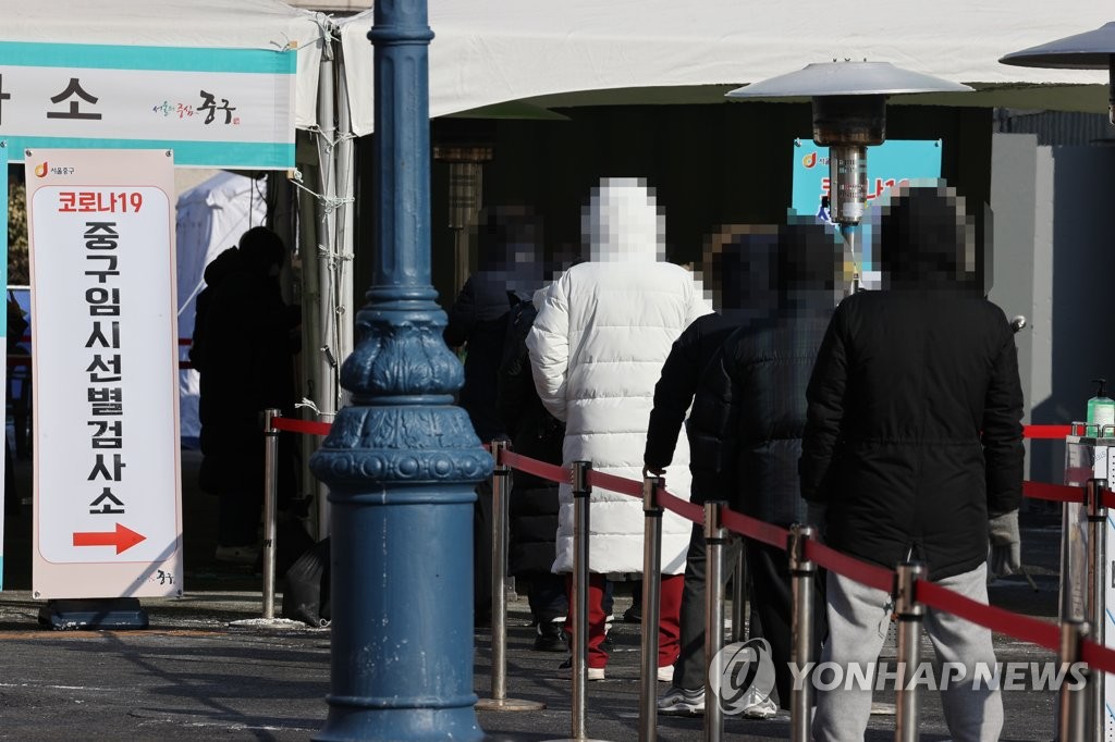 ▲ Citizens wait in a line to receive COVID-19 tests at a makeshift clinic in central Seoul on Jan. 9, 2021. (Yonhap)