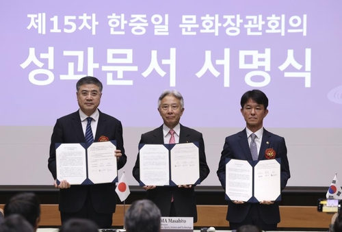 The meeting was attended by Yong Ho-sung, South Korea's first vice minister of culture, sports and tourism; Japanese Minister of Education, Culture, Sports, Science and Technology Masahito Moriyama; and Chinese Vice Minister of Culture and Tourism Zhang Zheng.