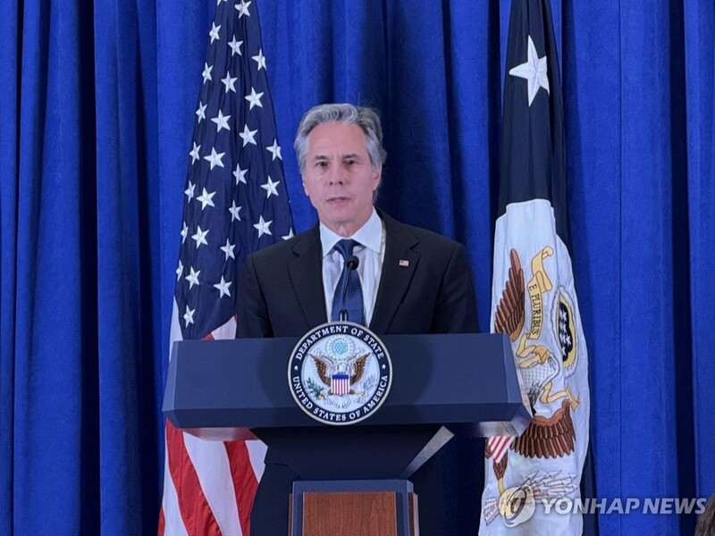 ▲ This photo, taken on Sept. 28, 2024, shows U.S. Secretary of State Antony Blinken speaking during a press conference in New York. (Yonhap)