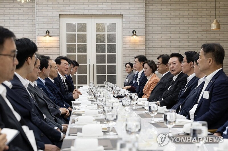 The meeting was held in the conspicuous absence of PPP leader Han Dong-hoon, who doesn't hold a parliamentary seat nor was invited by the presidential office, amid an ongoing power struggle between Yoon and Han.
