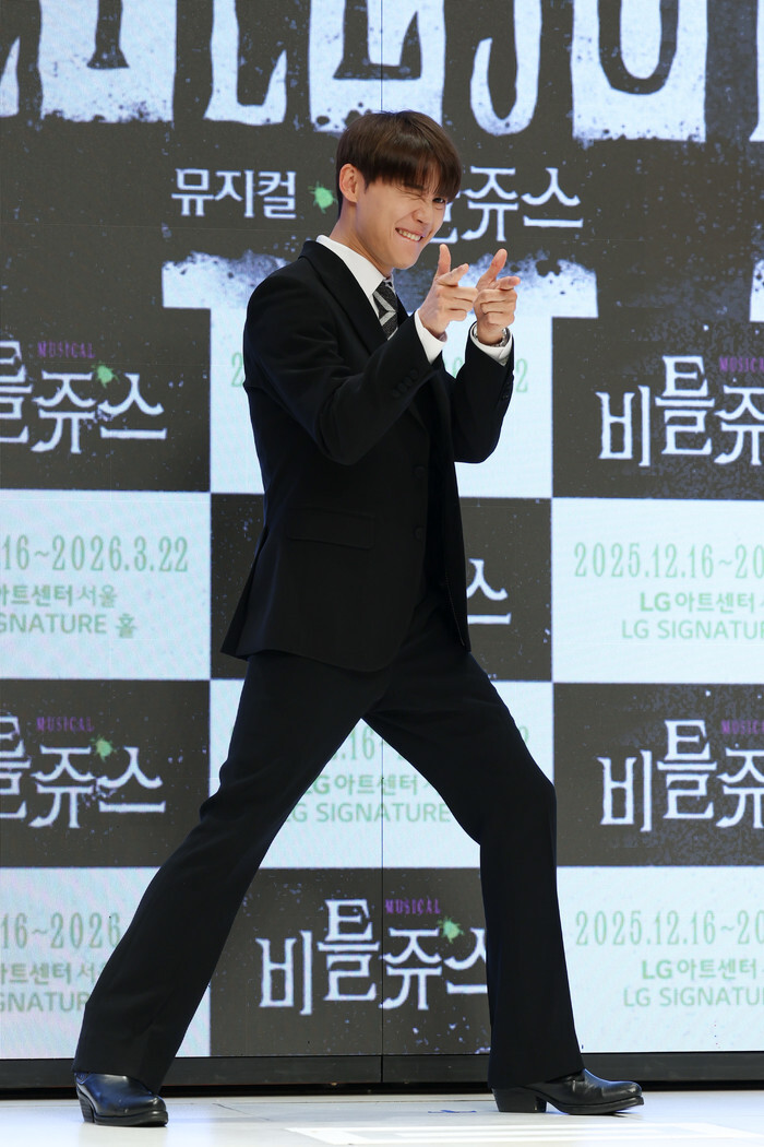 South Korean actor Kim Jun-soo, who stars in the new musical "Beetlejuice," poses for a photo during a publicity event in Seoul on Dec. 1, 2025. The musical will run from Dec. 16 to March 22. (Yonhap)