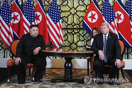 ▲ This AFP file photo shows North Korean leader Kim Jong-un (L) and U.S. President Donald Trump at the Sofitel Legend Metropole Hanoi hotel on Feb. 28, 2019. (Yonhap)