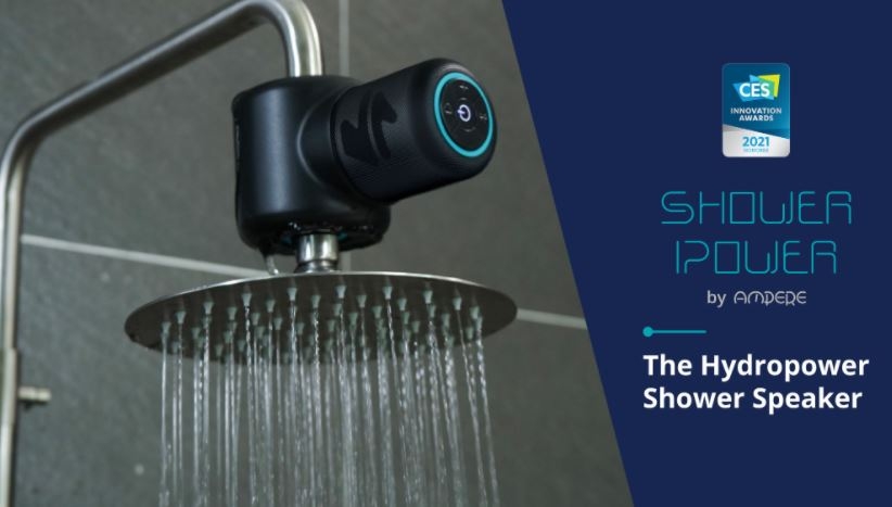 '암페어'(Ampere)는 샤워기와 연결해 수력 발전하는 신개념 '샤워 스피커'를 선보였다.