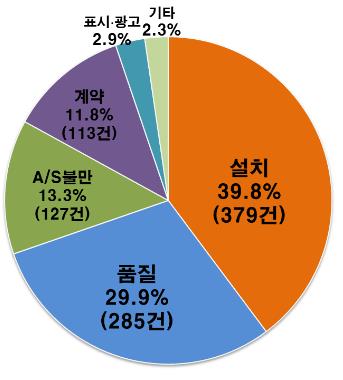 이어 냉방 불량이나 소음, 악취 등 '품질' 관련이 29.9%, 수리 불만족, 수리 비용 과다 청구 등 사후서비스(AS) 불만 관련이 13.3%를 차지했다.