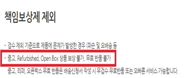 | ▲ 배송대행업체의 중고제품 보상 제한 사례 [소비자원 제공, 재판매 및 DB 금지] |