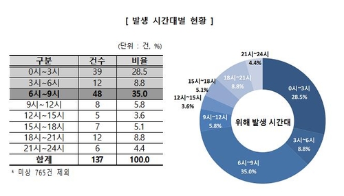 발생 시간을 확인할 수 있는 137건을 분석한 결과 잠에서 깬 직후인 '오전 6∼9시'에 증상을 발견한 사례가 35%였고 '0시∼오전 3시' 발견이 24.8%였다.