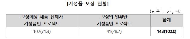 | ▲ 보상형 크라우드 펀딩 프로젝트의 기성품 보상 현황 [한국소비자원 보도자료 캡처. 재판매 및 DB 금지] |