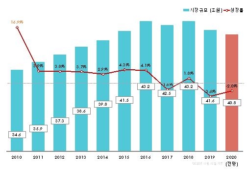 전년 대비 3.6% 감소했던 2019년에 이어 2년 연속 마이너스 성장이다.
