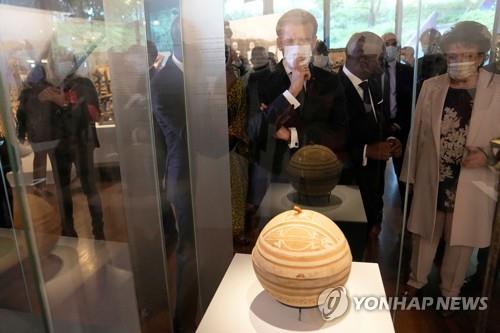 그는 이날 오를리앙 아그베농시 베냉 외교부 장관과 함께, 베냉에 오는 11월 9일 인도되기 전 파리에서 전시 중인 '아보메 보물' 전시 컬렉션을 둘러봤습니다.