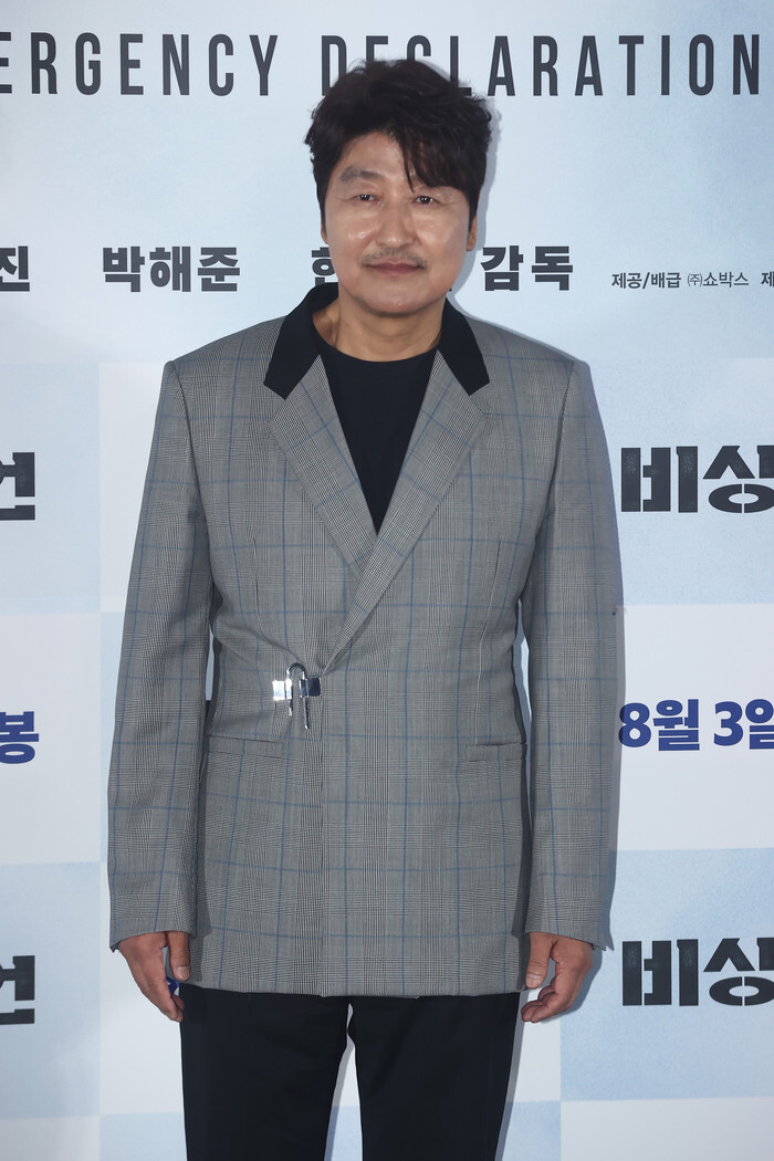 South Korean actor Song Kang-ho, who stars in the new movie "Emergency Declaration," poses for a photo during a publicity event in Seoul on July 25, 2022. The movie will be released in South Korea on Aug. 3. (Yonhap)