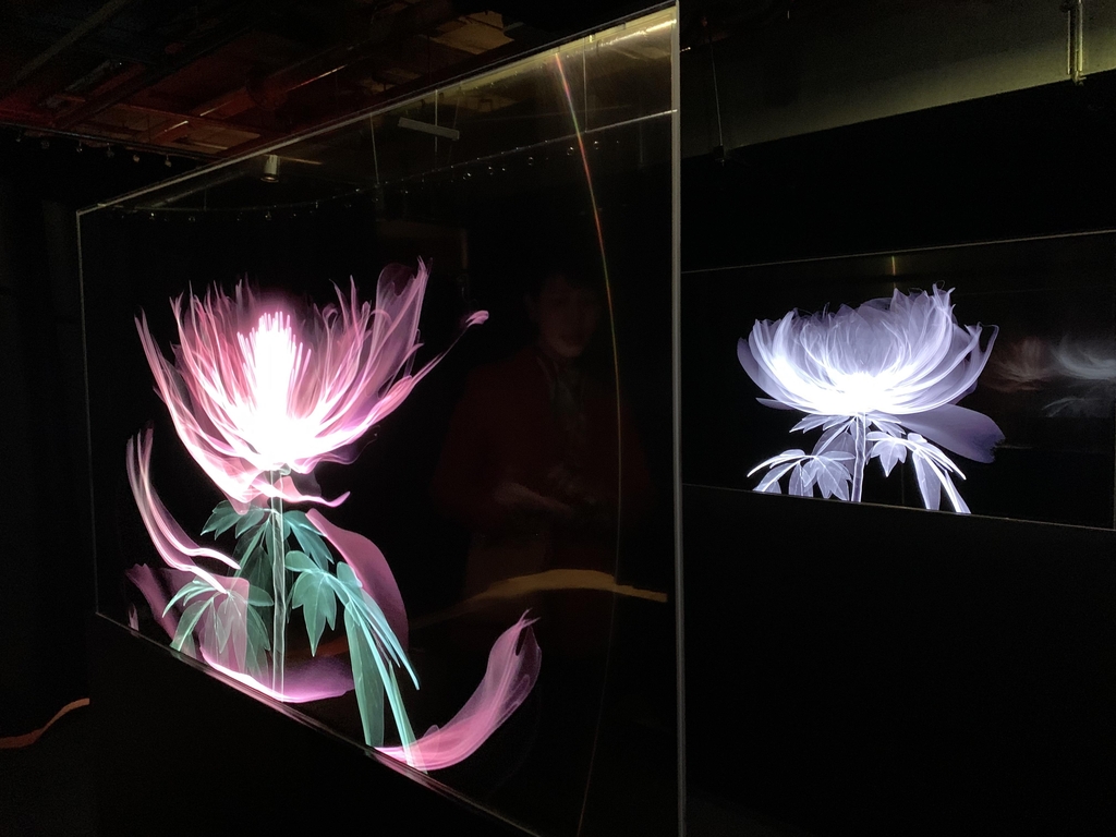 '스타리 비치'와 함께 영국에 처음 소개되는 에이스트릭트의 신작 '모란도'는 투명한 OLED를 이용한 작품으로, 새로운 매체를 활용해 모란꽃의 섬세함과 우리 전통화의 느낌을 살린 것이 인상적입니다.