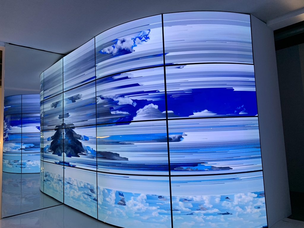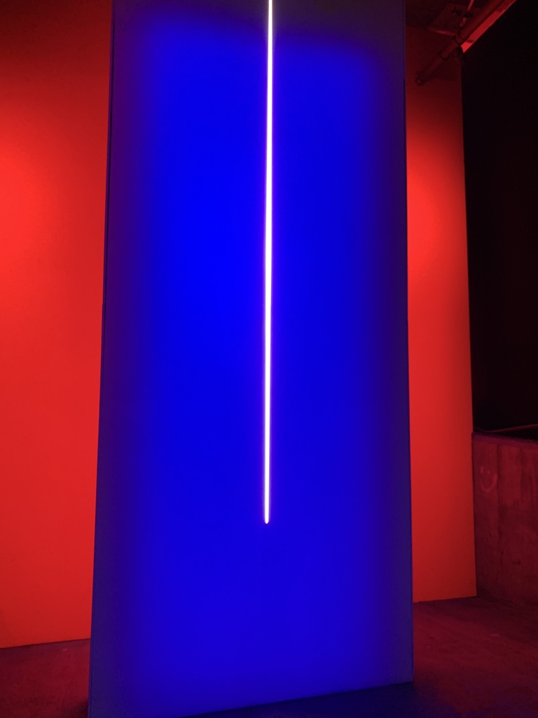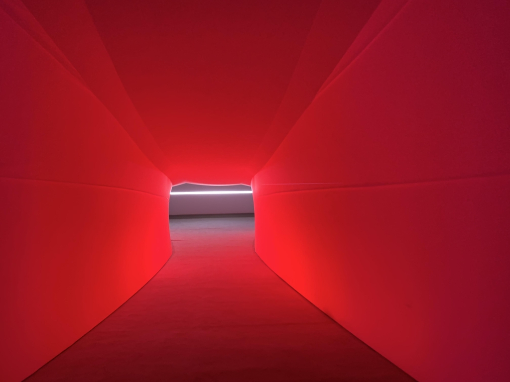 선명한 '블루스카이화이트' 화면을 지나 거대한 작품 속으로 들어가면 변화하는 빛과 에스 데블린의 목소리가 몽환적인 분위기를 만드는 24m 통로가 등장합니다. 이어 모니터와 거울로 구성된 방으로 들어가면 파란 하늘, 먹같이 검은색의 영상이 교차합니다.