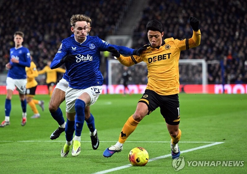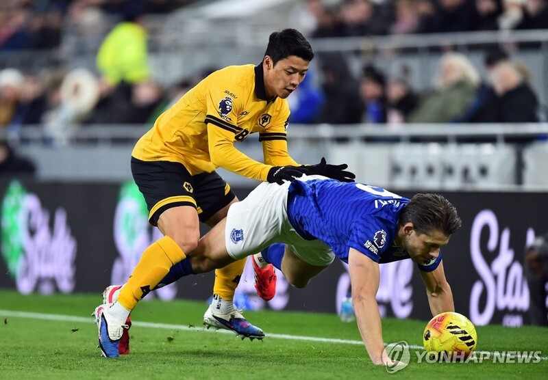 (서울=연합뉴스) 이영호 기자 = '황소' 황희찬이 풀타임을 뛴 잉글랜드 프로축구 프리미어리그(EPL) 울버햄프턴이 후반 막판 2명이 퇴장당한 에버턴과 비겨 3경기 연속 무패 행진을 이어갔다.